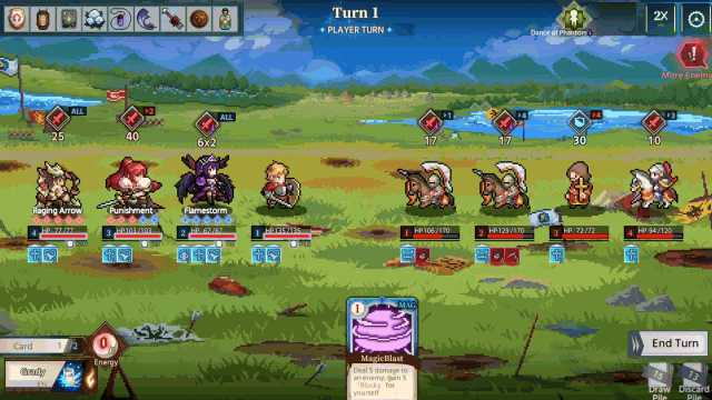 • เพื่อนร่วมทีมสามารถแสดงทักษะพิเศษของพวกเขาด้วยเอฟเฟกต์พิเศษอันน่าทึ่ง และความสามารถเหล่านี้จะทำงานตามวิธีการเล่นการ์ดของคุณ วางแผนกลยุทธ์การ์ดและเพื่อนร่วมทีมของคุณเพื่อเพิ่มศักยภาพการต่อสู้ของคุณให้สูงสุด!