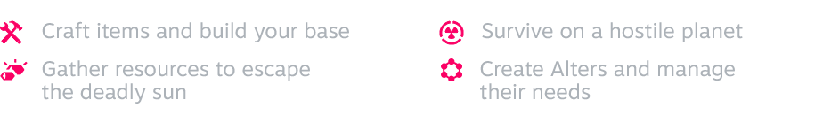 ทรัพยากรที่รวบรวมได้สามารถนำมาใช้ในรูปแบบต่างๆ ได้ เช่น สร้างไอเท็มที่จำเป็นหรือพัฒนาฐานของคุณด้วยโมดูลเพิ่มเติม เช่น ห้องวิจัยหรือห้องสังสรรค์ บางครั้งคุณจะต้องเลือกระหว่างการสร้างไอเท็มโดยเฉพาะสำหรับ Alters ของคุณ หรือไอเท็มที่สามารถผลักดันภารกิจให้ก้าวหน้า เช่น เครื่องตรวจจับความผิดปกติหรือตัวกรองรังสี ภาระของการตัดสินใจทุกครั้งอยู่ที่ไหล่ของคุณเท่านั้น เนื่องจากคุณจะไม่สามารถตอบสนองความต้องการของทุกคนได้