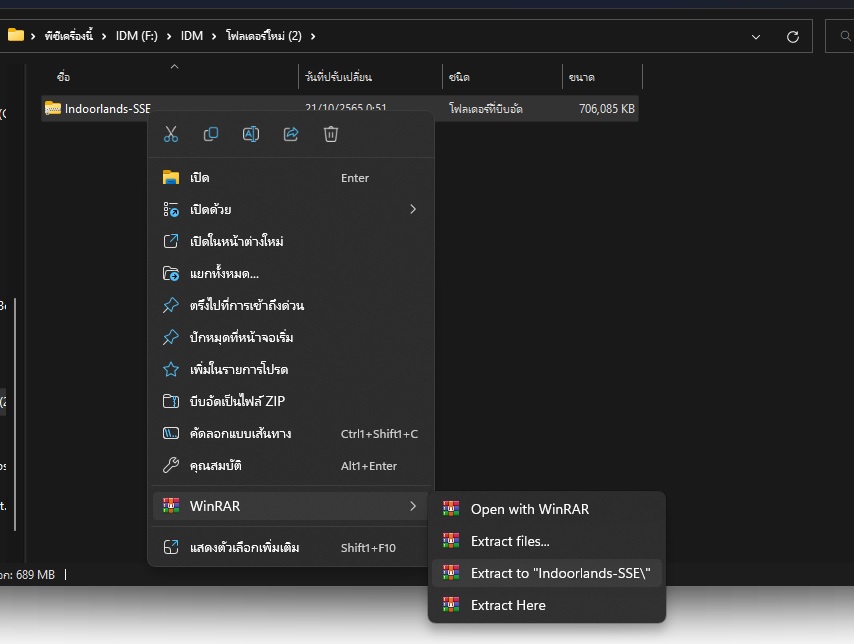 2.คลิกขวาที่ไฟล์ > Winrar > Extract to “..”